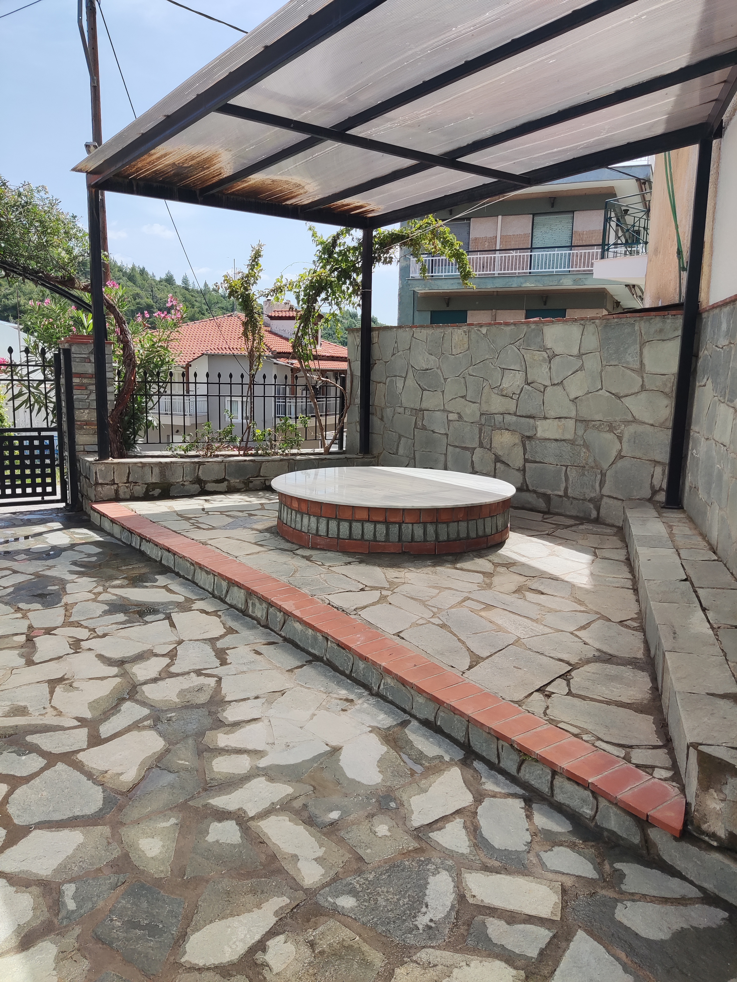 Nalazi se u centru grada kod fontane, na samoj obali mora. Udaljena je od glavne plaže oko 400 m. Sa unutrašnje strane kuće je lepo uredjeno dvorište - vrt. Svi studiji se nalaze u parteru i na 1. spratu. Studiji su 1/2 (jedan francuski ležaj), 1/3 (jedan francuski ležaj i jedan klasičan ležaj) i 1/3+1 (jedan francuski ležaj, jedan klasičan ležaj iz koga se izvlači još jedan ležaj). Prostrani su, sa terasom koja ima garnituru za sedenje i tendu,  vrata i prozori imaju roletne, kupatilo (tuš kada,WC, lavabo sa ogledalom), kuhinja (kompletno opremljena sa posuđem, dve ringle, frižider), TV i A/C (čije je korišćenje uključeno u cenu), jedan peškir po osobi. Promena posteljine i peškira vrši se na 5 dana. Gostima je na raspolaganju WI-FI internet (agencija nije odgovorna za kvalitet i brzinu). Skoro sve terase gledaju na more.