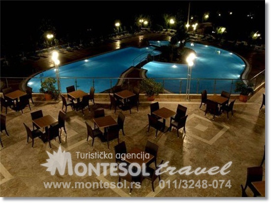 SADRŽAJ/USLUGE: otvoreni i zatvoreni bazen, doktor na poziv, bebi servis, menjačnica, kućni ljubimci su dozvoljeni, room service, besplatne ležaljke i suncobrani pored bazena (na plaži uz naknadu), đakuzi, sauna, internet kafe, mini market, poslovni centar, 3 sale za konferencije (kapaciteta 200 do 300 osoba), sefovi za čuvanje dragocenosti (na recepciji uz naknadu), besplatni transferi jednom dnevno do Uranopolisa, bazen i igralište za decu, stoni tenis, košarka, tenis, bilijar, odbojka na pesku, sportovi na vodi, fitnes klub, teretana, pecanje, biciklizam, hamam, odbojka, mini disko, program animatora, 3 restorana, 2 bara unutar hotela, bar na plaži i bar pored bazena. Suncobrani i ležaljke oko bazena su uključeni u cenu, a na plaži se doplaćuju 5 eur (set: 2 ležaljke i suncobran). Peškiri za plažu se iznajmljuju uz depozit od 20 eur