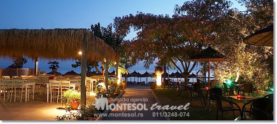 SADRŽAJ/USLUGE: recepcija,dva restorana,bar, konferencijska sala, WI-FI u javnim delovima hotela, dečije igralište, bazen sa delom za decu, teretana (besplatno), sauna (besplatno), stoni tenis, parking. Suncobrani i ležaljke oko bazena i na plazi su uključeni u cenu.