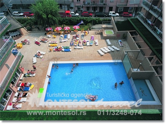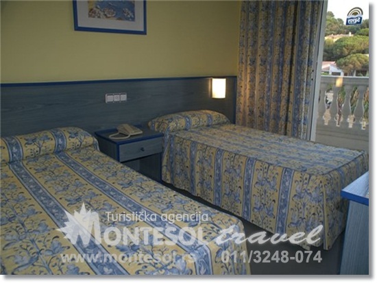Hotel:Hotel raspolaže sa 176 soba. U okviru hotela, u unutrašnjem izolovanom delu, nalazi se bazen na otvorenom i bazen za decu. Uz bazen smešten je i bar, tako da imate priliku da se sunčate uz konzumiranje Vaših omiljenih napitaka. U hotelu možete koristiti usluge i restorana sa lokalnim i internacionalnim specijalitetima, a u večernjim časovima u ponudi je i animacijski program sa muzikom uživo i flamenko šou-om.