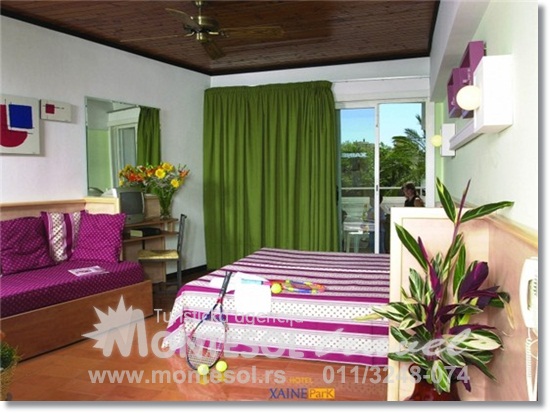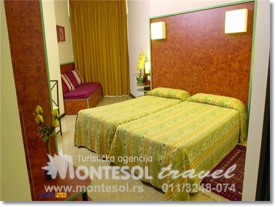 Soba:Hotel ima kapacitet od 187 soba. Od rekreativnih sadržaja gosti hotela imaju na raspolaganju besplatno korišćenje bazena na otvorenom, fitnes kluba, đakuzija, teretane i sale sa TV satelitom. Hotel takođe poseduje bar, poslastičarnicu, bilijar salu… U večernjim časovima gosti mogu uživati u animacijskom programu i flamenko šou-u.