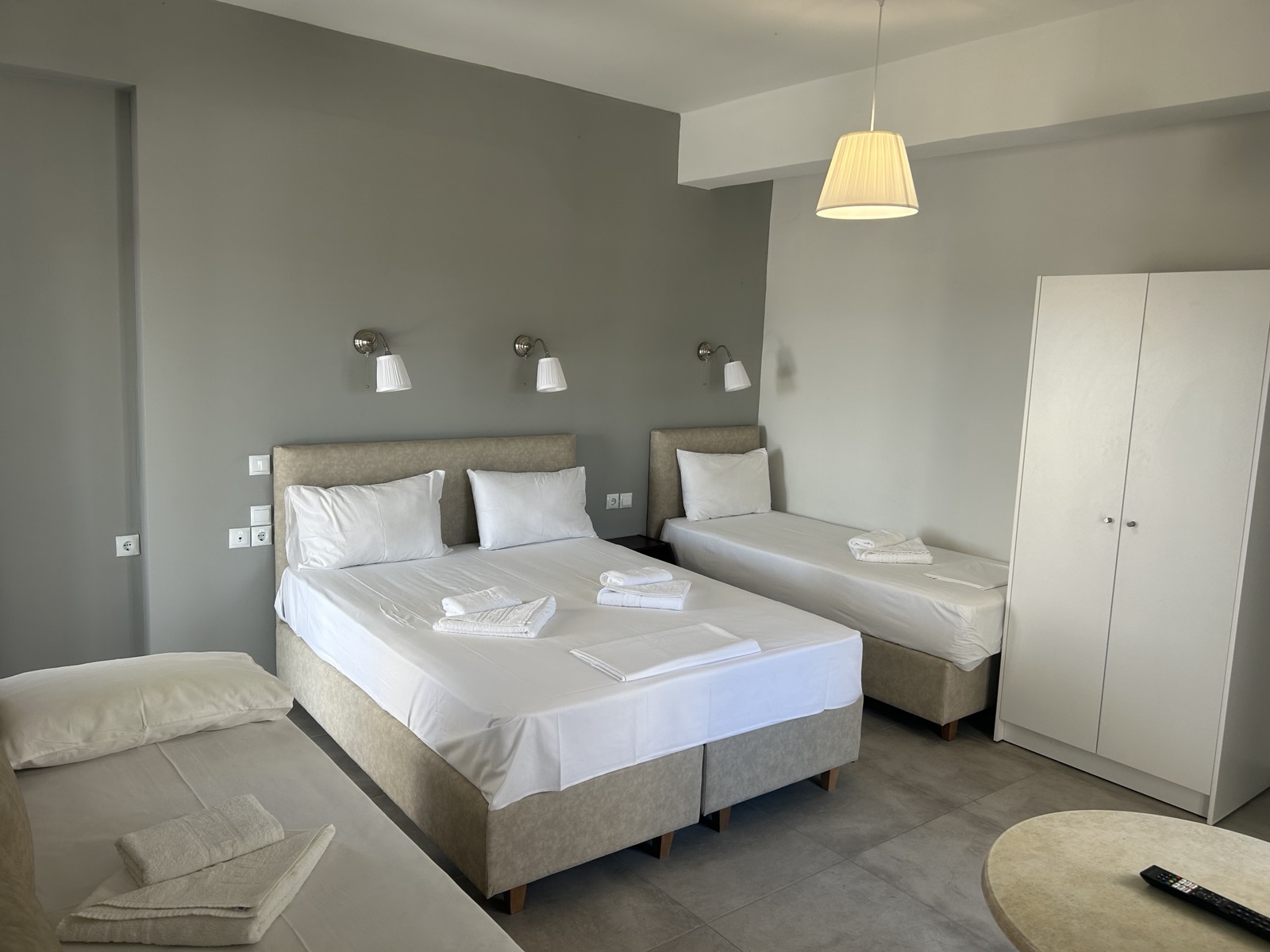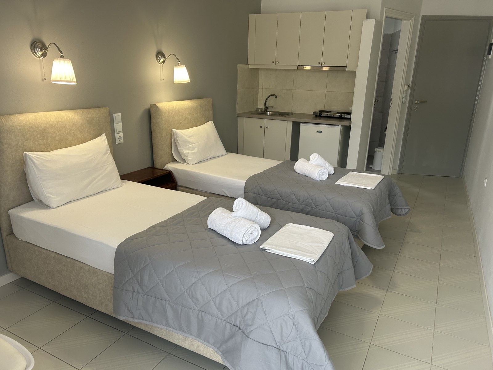 Vila Edipsos Inn nalazi se na oko 180 m od plaže. Raspolaže sa 1/2, 1/3, 1/3+1 studijima, koji su renovirani i lepo uredjeni 2024. godine. Svi studiji sadrže spavaći deo, kuhinju sa trpezarijom, kupatilo. Sobe su klimatizovane i imaju TV. Zamena posteljine i peškira se vrši na 5 dana. Vila poseduje lift. U blizini objekta nalaze se mnogobrojni supermarketi, prodavnice, pekare i restorani. Gostima je obezbeđen prostor za odlaganje prtljaga poslednjeg dana boravka, kao i dva toaleta. Svi studiji poseduju klima uređaje. Doplata za korišćenje klima uređaja je 5€ po danu po smeštajnoj jedinici plaća se na licu mesta. Wi-Fi je besplatan. Agencija ne može garantovati brzinu interneta i nije odgovorna u slučaju nestanka interneta usled tehničkih problema grčkih operatera.