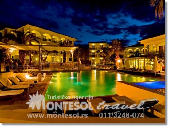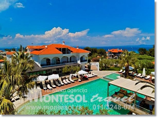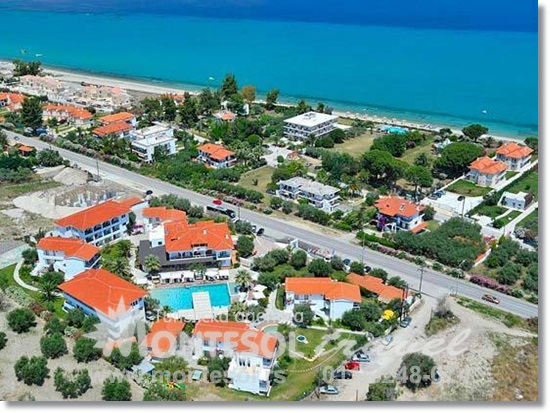 LOKACIJA: hotel se nalazi na ulasku u Pefkohori, 150 m udaljen od plaže. To je hotelski kompleks koga čini 7 manjih zgrada.
