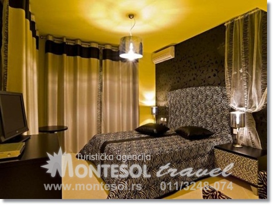 SOBE: 81 soba (standardne, superior, junior suite, executive suite, grand suite). Sve sobe imaju klima uređaj, SAT TV, DVD, telefon, frižider, fen za kosu, kupatilo i terasu sa garniturom za sedenje. Superior sobe - prostranije su i sadrže jednu prostoriju sa delom za spavanje i dnevni boravak sa dve sofe. Junior suite - dve prostorije odvojene kliznim vratima: spavaća soba sa dva ležaja i dnevna soba sa dve sofe. Grand suite - luksuzna i prostrana spavaća soba i dnevna soba sa dve sofe, kupatilo sa đakuzijem.