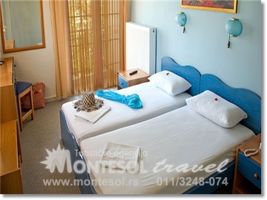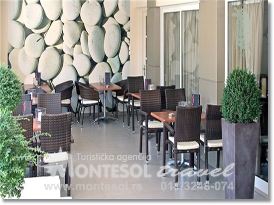 SOBE:Ima 36 soba. Sve sobe imaju kupatilo, fen za kosu, klima uređaj, SAT TV, telefon, balkon ili terasu, frižider.