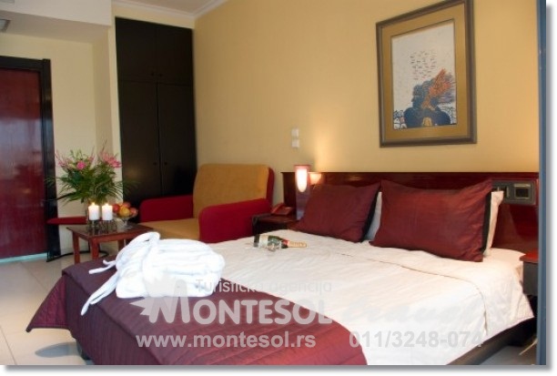SOBE:Sve sobe su sa TWC sa fenom, TV, telefonom, mini barom, radiom, krevecom (na upit, bez doplate), A/C i terasom. Standardne sobe su namenjene za 2-3 osobe (2 standardna ili "francuski" ležaj i sofa).