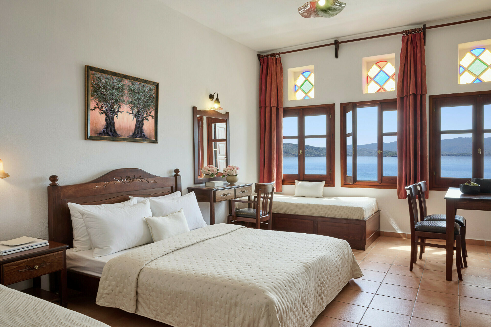 Superior Family Suite Erato: Površine je oko 48-58m2. Ima odvojenu spavaću sobu sa francuskim ležajem, a u dnevnoj sobi su dodatni ležajevi. Soba je opremljena i malom čajnom kuhinjom. Udaljeni su od mora od 6-8 metara. Nalaze se u kompleksu Erato.