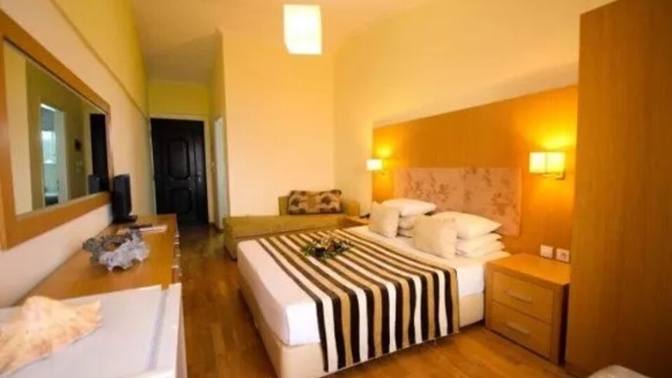 SADRŽAJ: Recepcija, glavni restoran sa mediteranskom i internacionalnom kuhinjom, a la carte restoran, bar pored bazena, dva spoljašnja bazena sa odvojenim dečjim bazenima, mini market, dečje igralište, mini klub za decu, animacijski programi za decu i odrasle, besplatan Wi-Fi u zajedničkim prostorijama, spa centar sa masažama (uz doplatu), fitnes centar, parking.