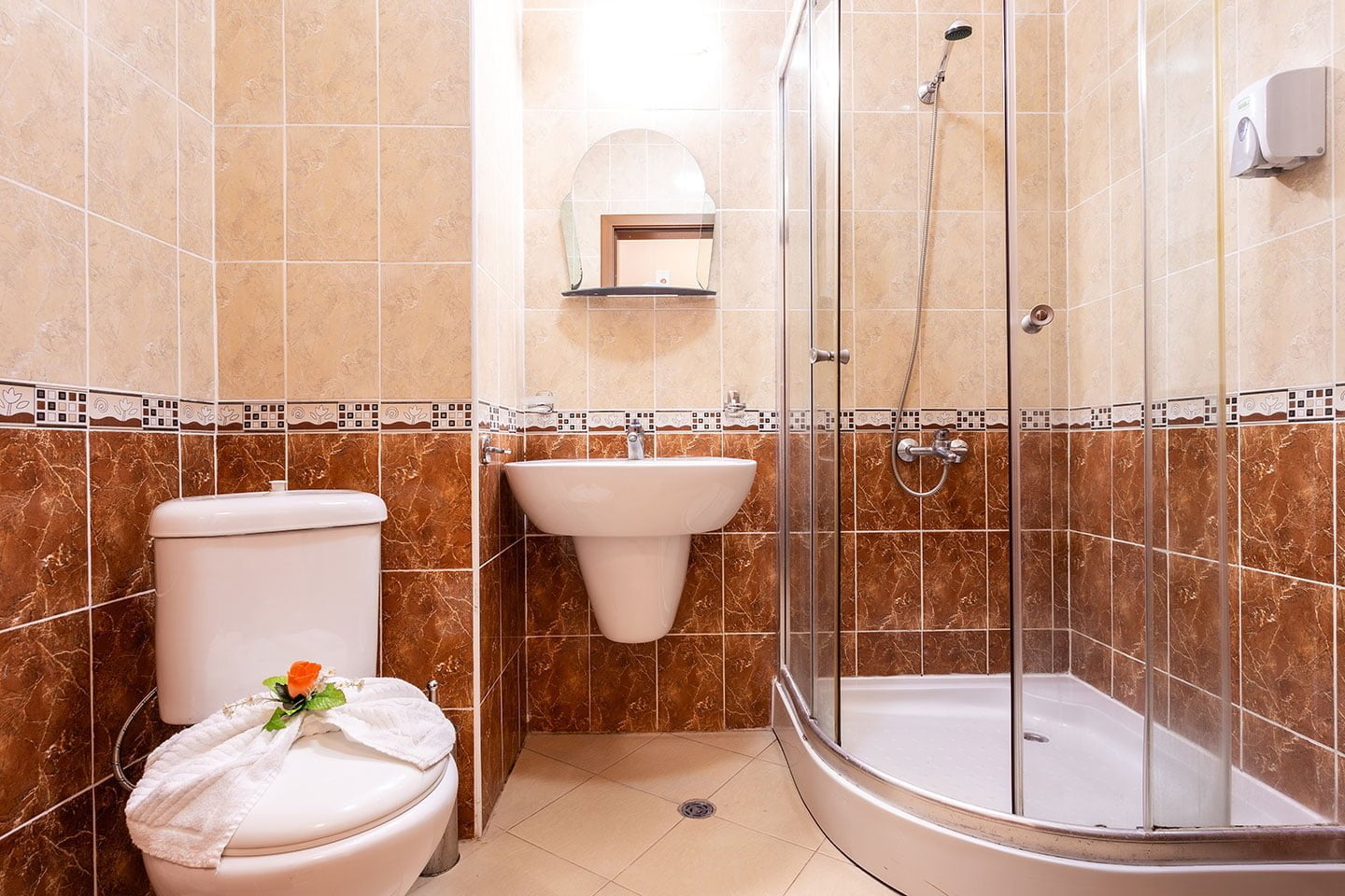 Sve sobe su centralno klimatizovane, opremljene kupatilom sa tuš kabinom, WC-om, fenom za kosu, telefonom, mini barom, balkonom.