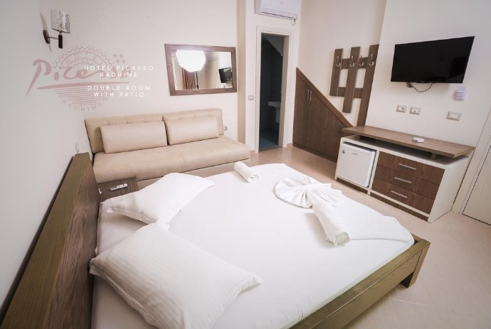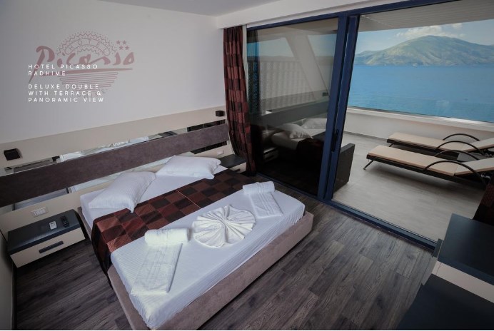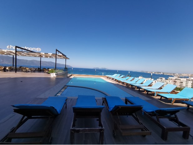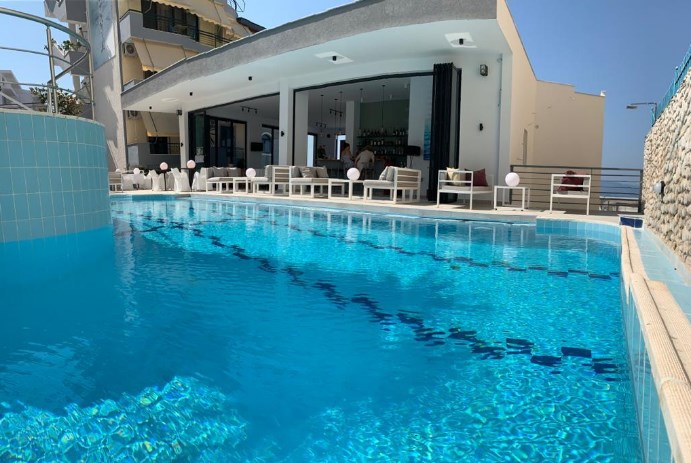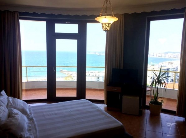 Hotel Picasso, Valona. Hotel poseduje otvoreni bazen, pogled na more i bar.