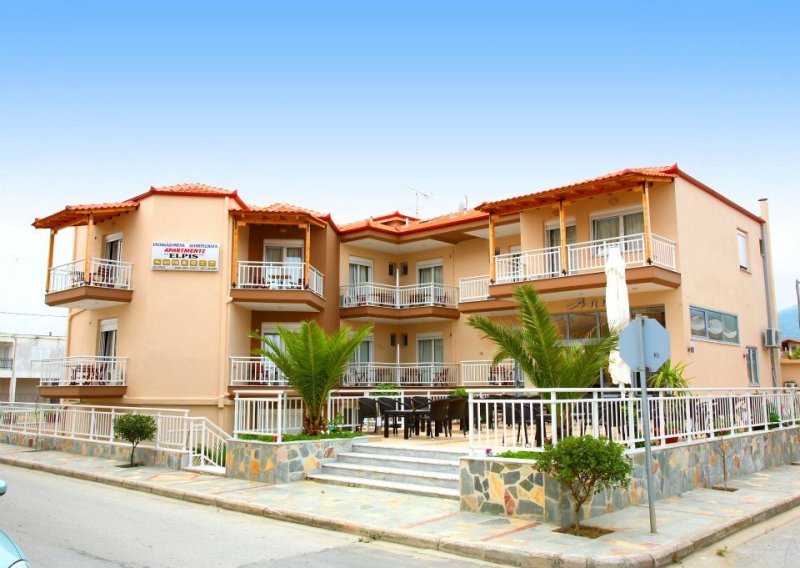 Vila Elpis se nalazi u Nea Vrasni, na svega tridesetak metara udaljenosti od uređenog šetališta pored plaže. Objekat poseduje dvokrevetne, trokrevetne i četvorokrevetne studije, kao i četvorokrevetne apartmane sa odvojenom spavaćom sobom. Studiji i apartmani su smešteni u prizemlju, na prvom i drugom spratu vile. Sve smeštajne jedinice vile Elpis opremljene su kuhinjom (rešo sa jednim ili dva grejna polja, manji frižider i osnovni potrebni pribor), kupatilom, TV-om, klima-uređajem (korišćenje uz doplatu 5 evra dnevno po studiju), kao i terasom sa garniturom za sedenje. Veličina studija je cca 20-22m² + terasa, a apartmana cca 27m² + terasa. Vila Elpis nema sopstveni parking.