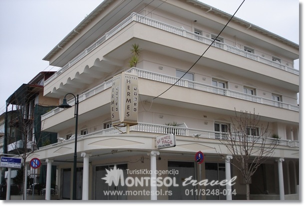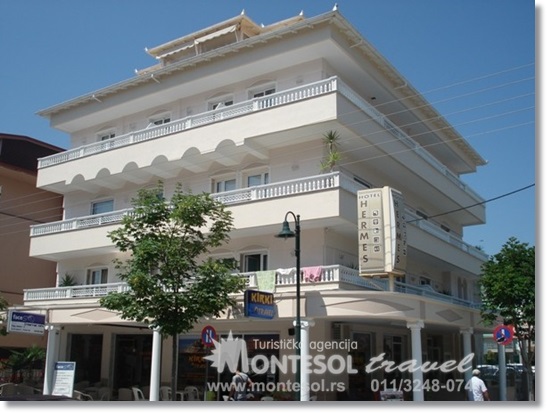 VILA HERMES se nalazi u centralnom delu mesta i udaljena je od plaže oko 100 m. Vila je veoma lepo uređena, poseduje recepciju, lift, zajedničke prostorije i toalet u prizemlju. Smeštajne jedinice nalaze se na prvom spratu.