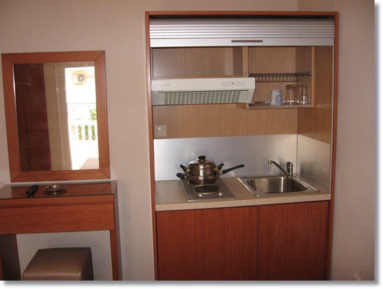 Kod trokrevetnog apartmana kuhinja je odvojena od spavaćeg dela, a četvorokrevetni apartman (dupleks) se sastoji od dve spavaće sobe i izdvojene kuhinje