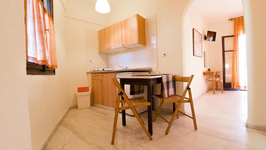 Vila Blue Ippokampos se nalazi u glavnoj ulici, u neposrednoj blizini centra Pefkohorija, na oko 100m udaljenosti od plaže. Sastoji se od dvokrevetnih i trokrevetnih studija opremljenih kuhinjom, delom za spavanje, kupatilom i terasom sa garniturom za sedenje. Sve smeštajne jedinice su opremljene klima-uređajem (korišćenje nije uključeno u cenu i doplaćuje se 5€ po danu) i flat TV-om. U vili Blue Ippokampos gosti ne dobijaju peškire. Smeštajne jedinice se nalaze u visokom prizemlju i na prvom spratu vile. Veličina studija je cca 20-25m² + terasa. Vila Ipokampos nema sopstveni parking.
