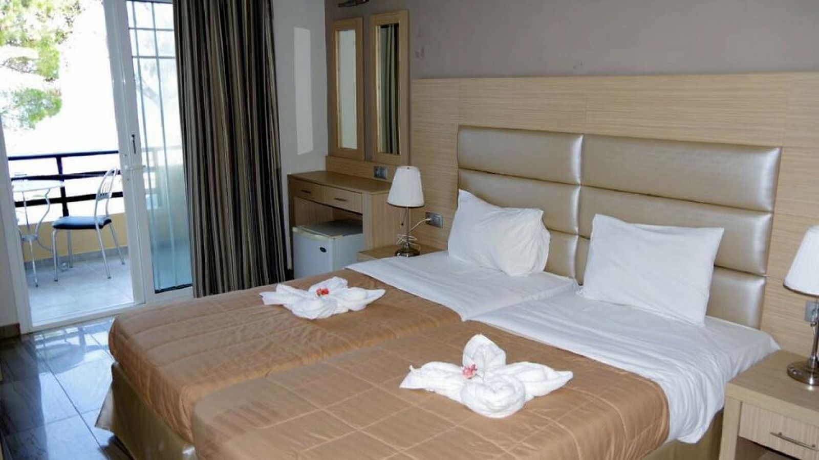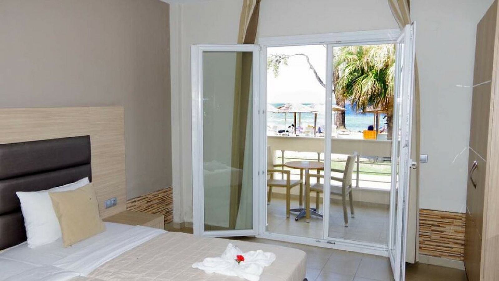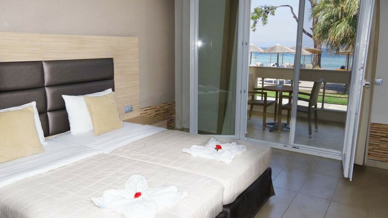 Sobe: Sve sobe imaju TV, wc sa fenom, mali frižider, SAT TV, A/C i terasu. Standardne sobe su površine oko 20 m2, namenjene su za 2-3 osobe (2 standardna ležaja ili francuski ležaj i pomoćni ležaj).