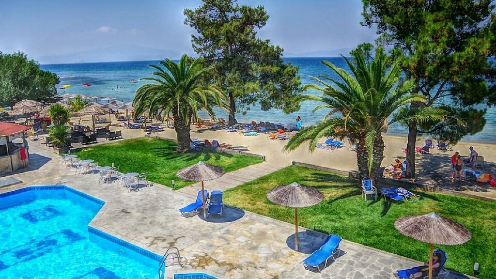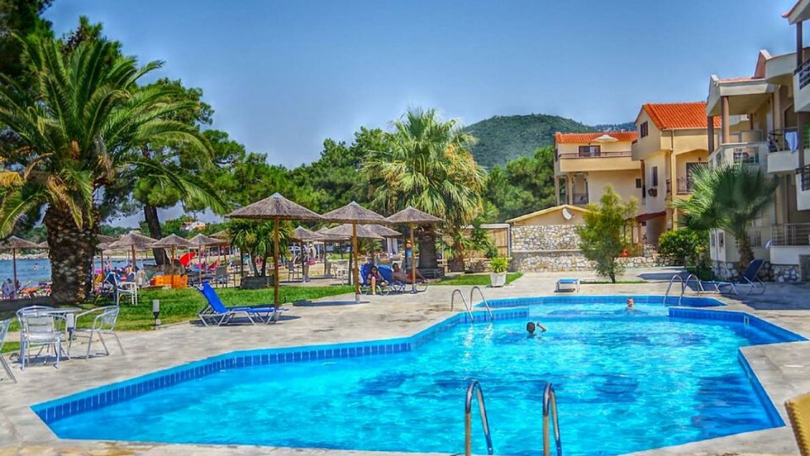 Sadržaj: Recepcija, dva bazena i dečji bazen, dva bara na plaži i pored bazena, sa ležaljkama i suncobranima. Kompleks ima i sopstveni parking ispred hotela, sef na recepciji (uz doplatu), Wi-Fi u javnim delovima hotela (besplatno), stoni tenis (bez doplate), bilijar (besplatno). Suncobrani i ležaljke oko bazena i na plaži su uključeni u cenu.