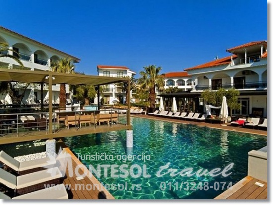 LOKACIJA: hotel se nalazi na ulasku u Pefkohori, 150 m udaljen od plaže. To je hotelski kompleks koga čini 7 manjih zgrada.