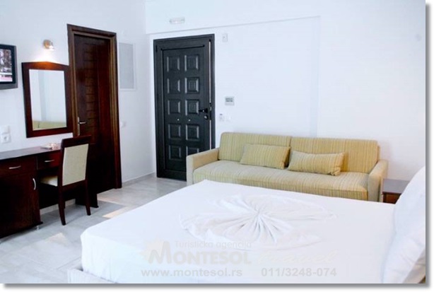LOKACIJA: Nalazi se na plaži, 200 m od centra Haniotija, 100 km od Soluna.