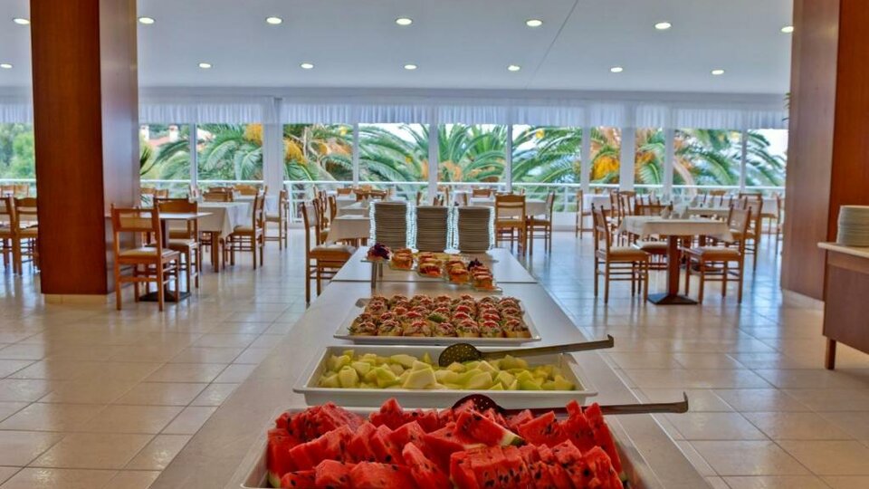 SADRŽAJ: Recepcija, restoran, Mendi taverna, lobi bar, bar pored bazena, otvoreni bazen sa morskom vodom, dečiji bazen, igraonica, mini klub za decu od 04-12 godina, konferencijska sala, parking (besplatno), mini-market, suvenirnica, rent-a-car, sportovi na vodi (uz doplatu), stoni tenis, teniski tereni (uz doplatu), mini golf, teren za odbojku, bilijar, teretana (uz doplatu), sala za konferenciju, WI FI internet.