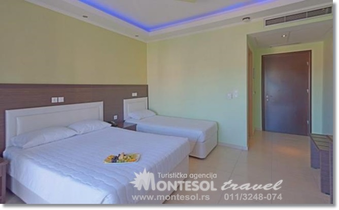 SADRŽAJ/USLUGE : Parking, WiFi internet, otvoreni bazen, dečiji bazen, dečije igralište, sala za konferencije, hemijsko čišćenje/pranje veša (na zahtev), sef na recepciji, lobby bar, bar na plaži (udaljen 200 metara), taverna na plaži, restoran