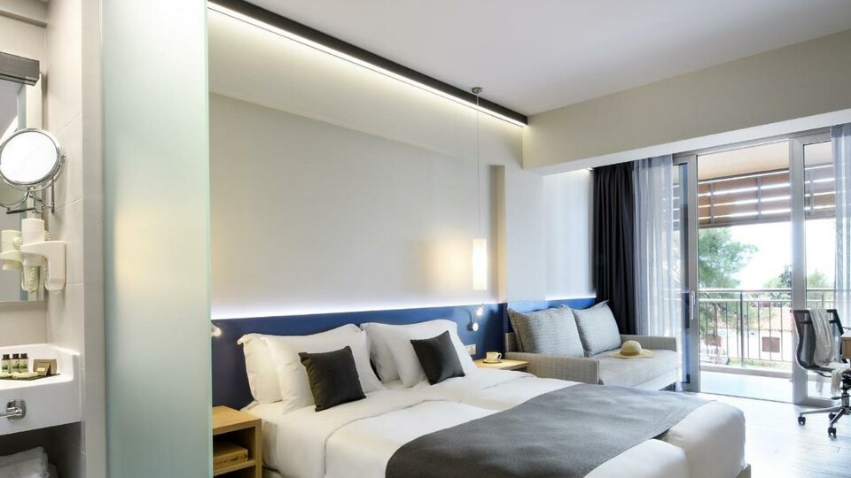 SOBE: svaka soba u hotelu je klimatizovana i sadrži telefonsku liniju, SAT TV, frižider, kupatilo, fen za kosu, balkon ili terasu sa pogledom ili na vrt ili na more, dodatni ležaj - sofa, mini bar.