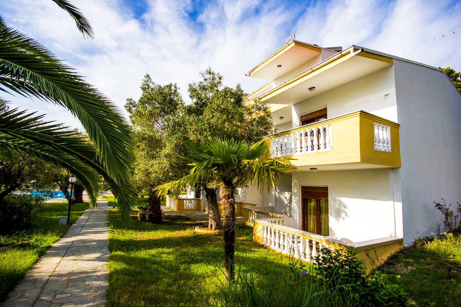 LOKACIJA: Hotel Koviou Holiday Village se nalazi na poluostrvu Sitonija, na oko 5 km udaljenosti od Nikitija i oko 13 km od Neos Marmarasa. Od plaže u zalivu Koviou je udaljen oko 300m (prelazi se tunelom ispod magistralnog puta koji povezuje hotel I plažu). Kompleks se sastoji od tri zgrade u kojima se nalaze standard sobe, mezonet, family apartmani i bungalovi. Hotel je skromnije opremljen ali uz odličnu ponudu i povoljne cene nudi mogućnost pravog porodičnog odmora.
