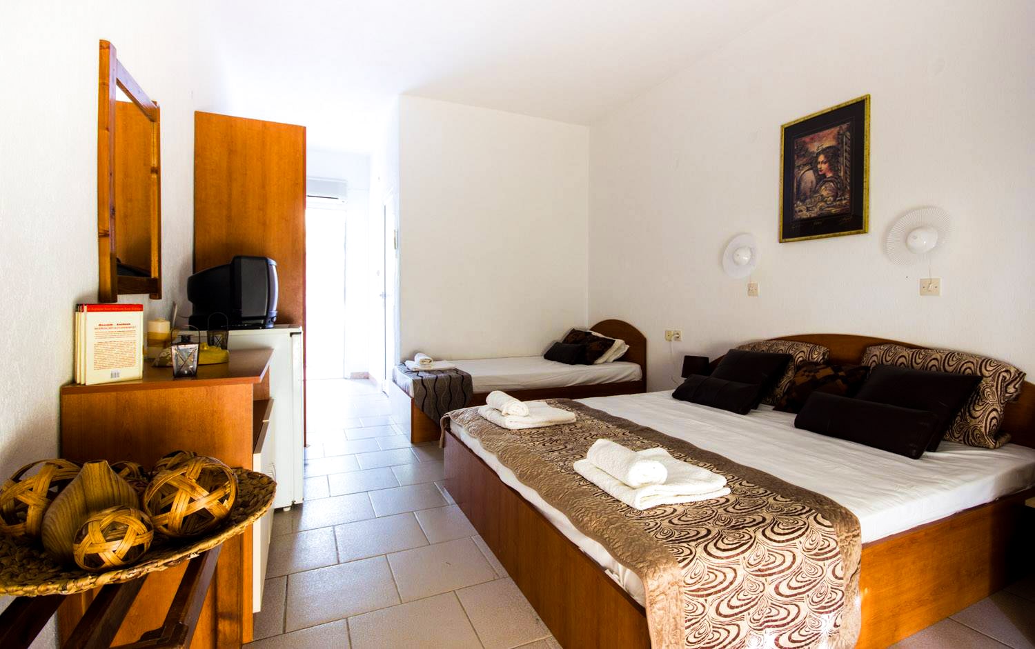 Standardne sobe oko 20 m², sa pogledom na bazen ili baštu, francuski ležaj ili 2 standardna ležaja i dodatnim krevetom (pomoćni ležaj) i sofa na razvlačenje, max. 4 osobe.