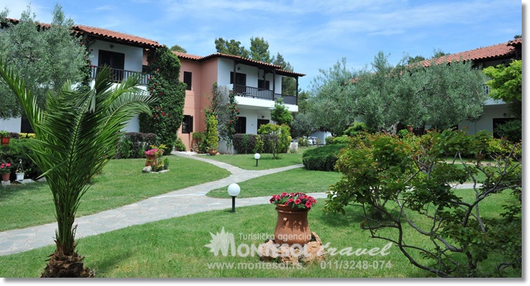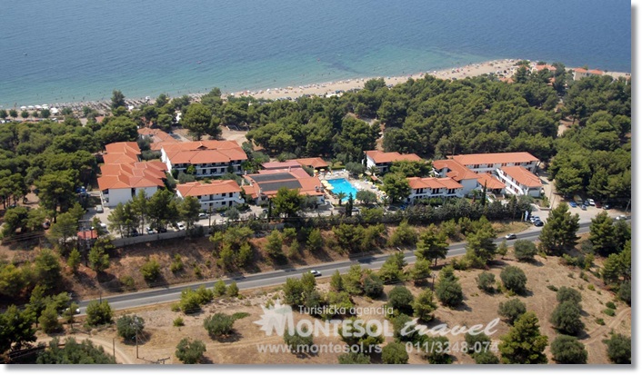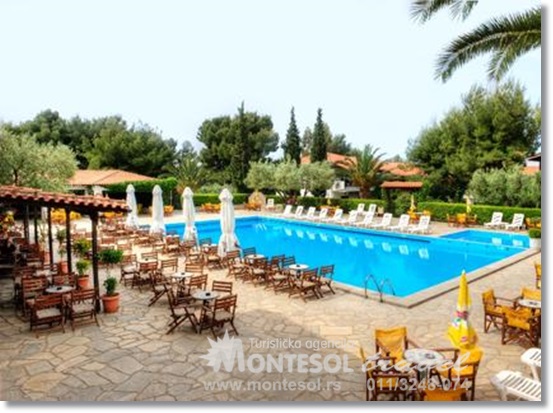 SADRŽAJ-USLUGA: Hotelski kompleks ima jedanaest dvospratnih većih bungalova u kojima se nalazi 155 soba. Od sadržaja, tu su: restoran, veliki bazen sa barom, dečji bazen i igralište, soba za zabavu sa velikim televizorim, stonim tenisom, bilijarom, igricama..., mala recepcija sa lobijem, sefovima (uz doplatu na licu mesta), Internet "corner" (uz doplatu na licu mesta), wifi internet u delu kod bazena (besplatno), parking (besplatno)... Suncobrani i ležaljke oko bazena su uključeni u cenu, a na plaži se doplaćuju oko 5 eur (set: 2 ležaljke i suncobran).