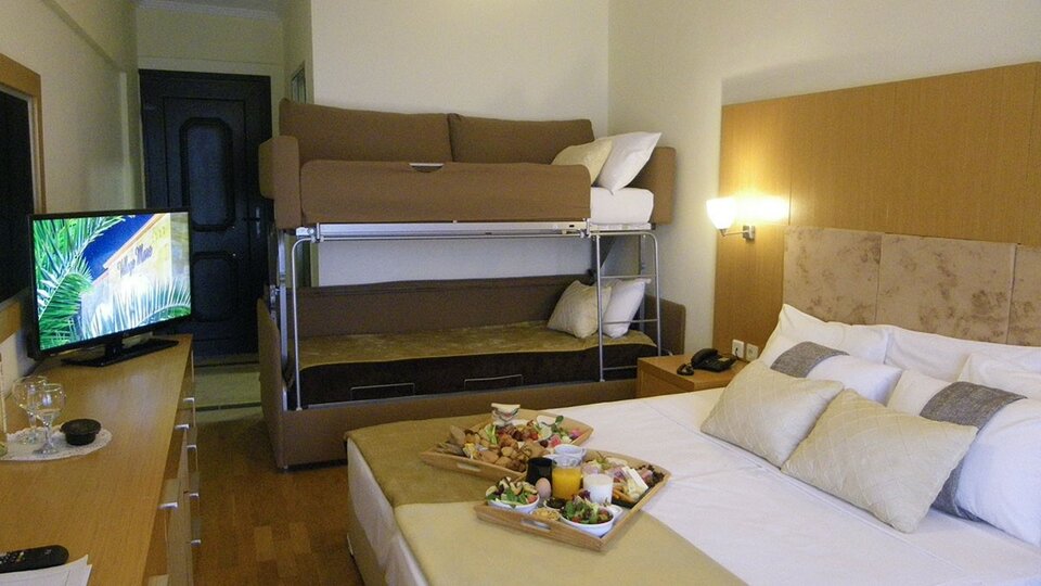SADRŽAJ: Recepcija, glavni restoran sa mediteranskom i internacionalnom kuhinjom, a la carte restoran, bar pored bazena, dva spoljašnja bazena sa odvojenim dečjim bazenima, mini market, dečje igralište, mini klub za decu, animacijski programi za decu i odrasle, besplatan Wi-Fi u zajedničkim prostorijama, spa centar sa masažama (uz doplatu), fitnes centar, parking.